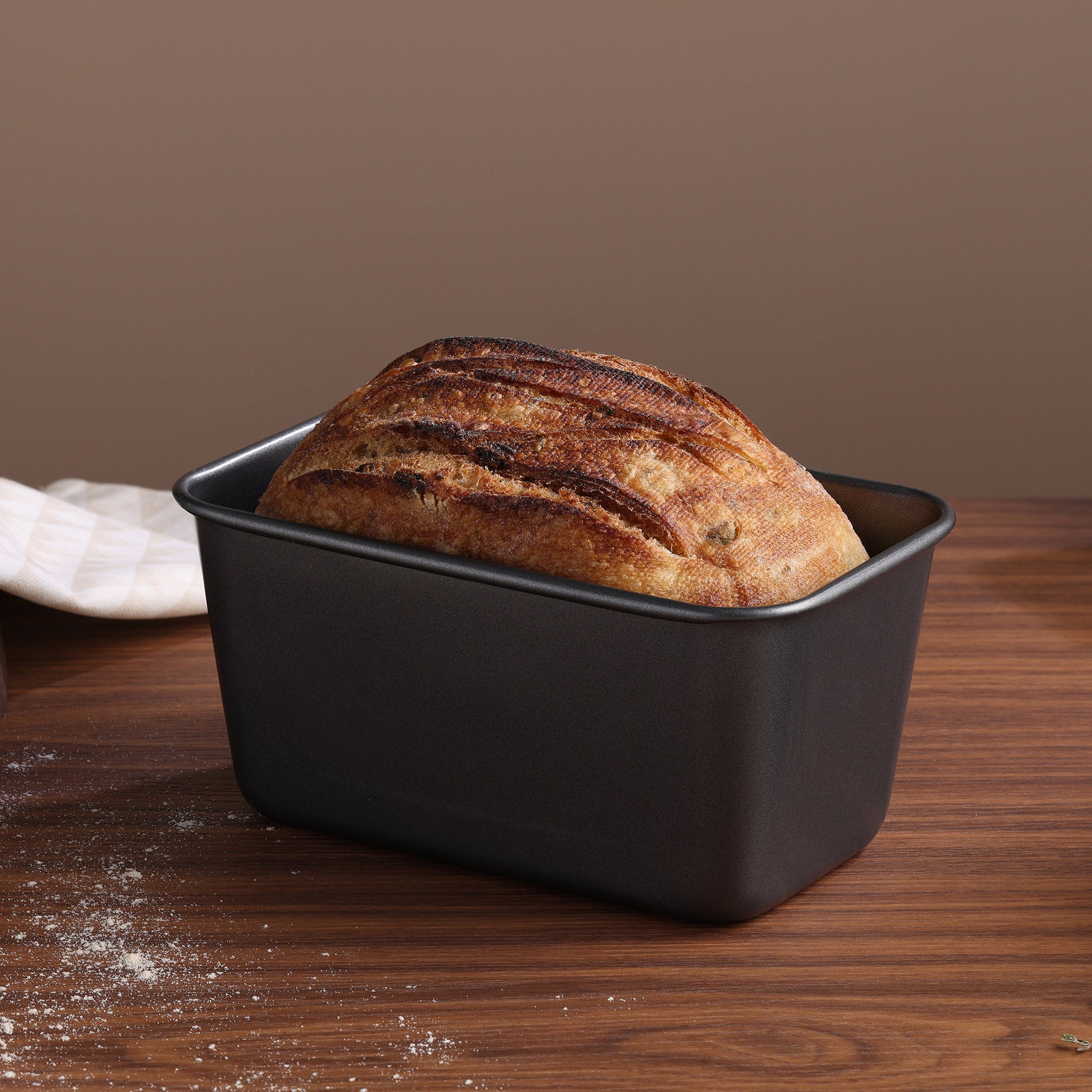 Diese Kastenform ist für den täglichen Gebrauch konzipiert, ofenfest bis 240 °C, geeignet für die Verwendung mit Metallwerkzeugen und formstabil. Erhältlich in zwei praktischen Größen – 1 l (1 lb) und 1,5 l (2 lb) – ist sie das ideale Backutensil für kleine und große selbstgebackene Brote.