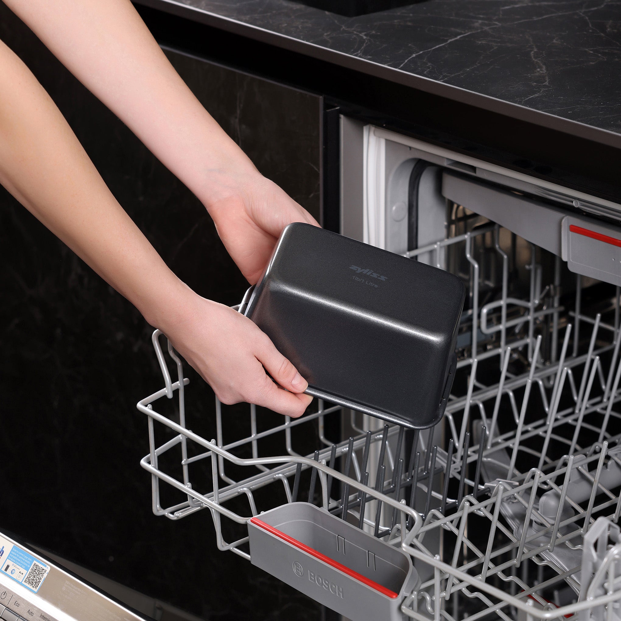 Mit der Zyliss Antihaft-Kastenform gelingen Ihnen perfekt selbstgebackenes Brot, Bananenbrot und Rührkuchen. Die aus robustem Kohlenstoffstahl gefertigte, langlebige Kastenform sorgt für eine schnelle und gleichmäßige Wärmeverteilung und damit für stets perfekte Backergebnisse.