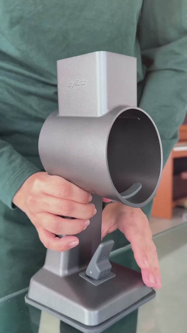 Une large trémie facilite le chargement, tandis que la base antidérapante assure une bonne stabilité pendant l'utilisation. La poignée ergonomique garantit un confort optimal et la râpe se démonte rapidement pour un nettoyage facile.