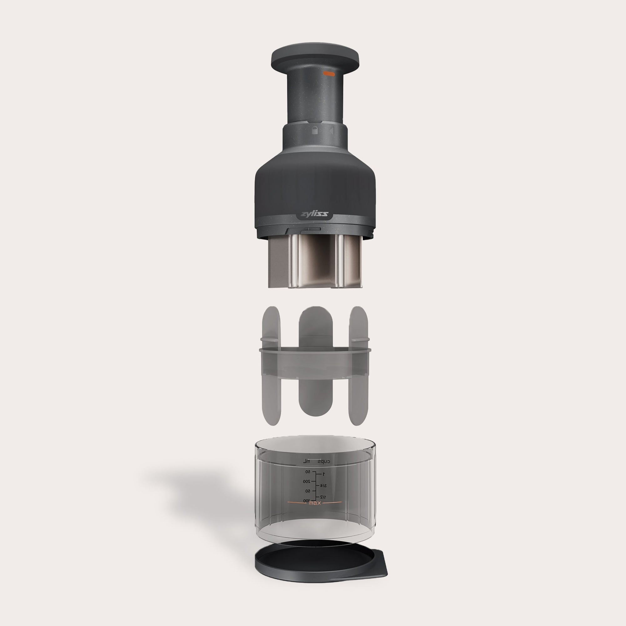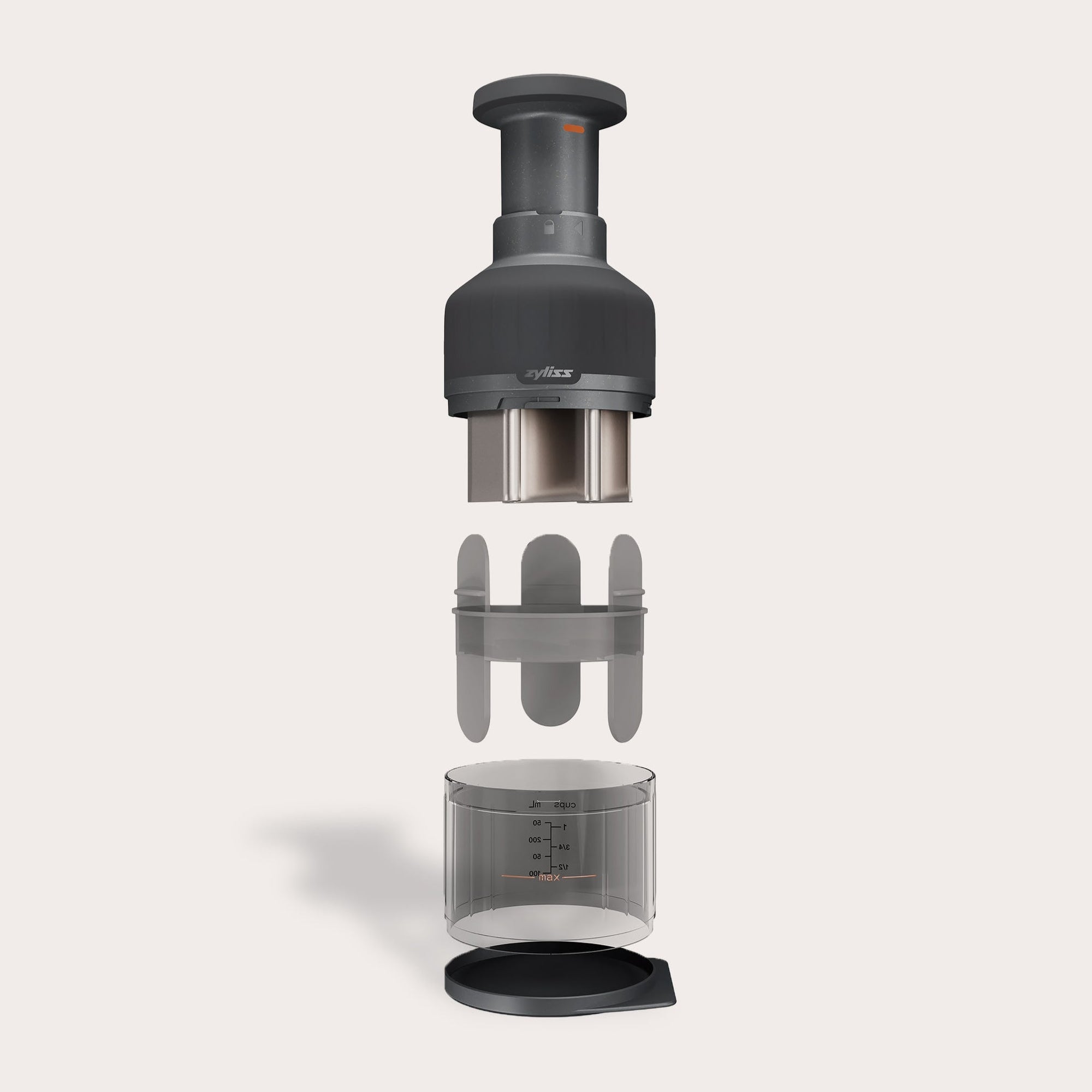 Le hachoir Zyliss Zick Zick 3 permet de hacher rapidement et sans effort. Sa lame tranchante en acier inoxydable tourne à chaque pression, assurant une coupe nette et homogène des légumes, fruits, noix, herbes, fromage et chocolat. Le poussoir actionne les raclettes pour un résultat impeccable avec un minimum d'effort. Hachez directement dans le récipient intégré gradué ou retirez la base pour l'utiliser sur une planche à découper. Conçu pour un confort optimal, il offre une prise en main sûre et un contrôle total. Le nettoyage est facile : la lame, la raclette et le récipient passent au lave-vaisselle. Un simple quart de tour suffit pour le verrouiller et le ranger de façon compacte. De la salsa fraîche au chocolat finement haché, ce hachoir polyvalent est idéal pour un usage quotidien.