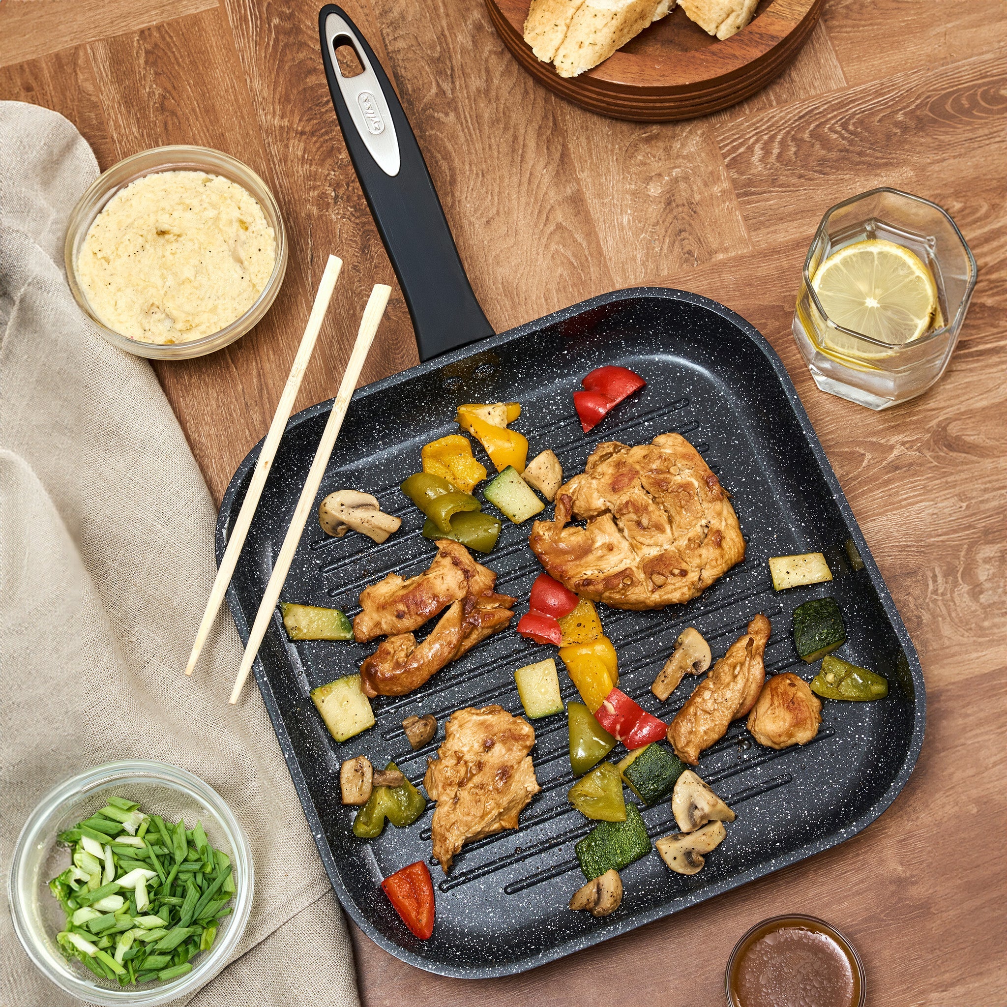 Réalisez de superbes marques de grillades en intérieur avec la poêle à griller en céramique Zyliss Ultimate de 26 cm (10 pouces). Dotée d'un revêtement antiadhésif sans PFOA ni PTFE, elle est idéale pour saisir steaks, poulet et légumes. Compatible avec tous les types de feux, y compris l'induction, elle est fabriquée en aluminium forgé et possède une poignée ergonomique douce au toucher.