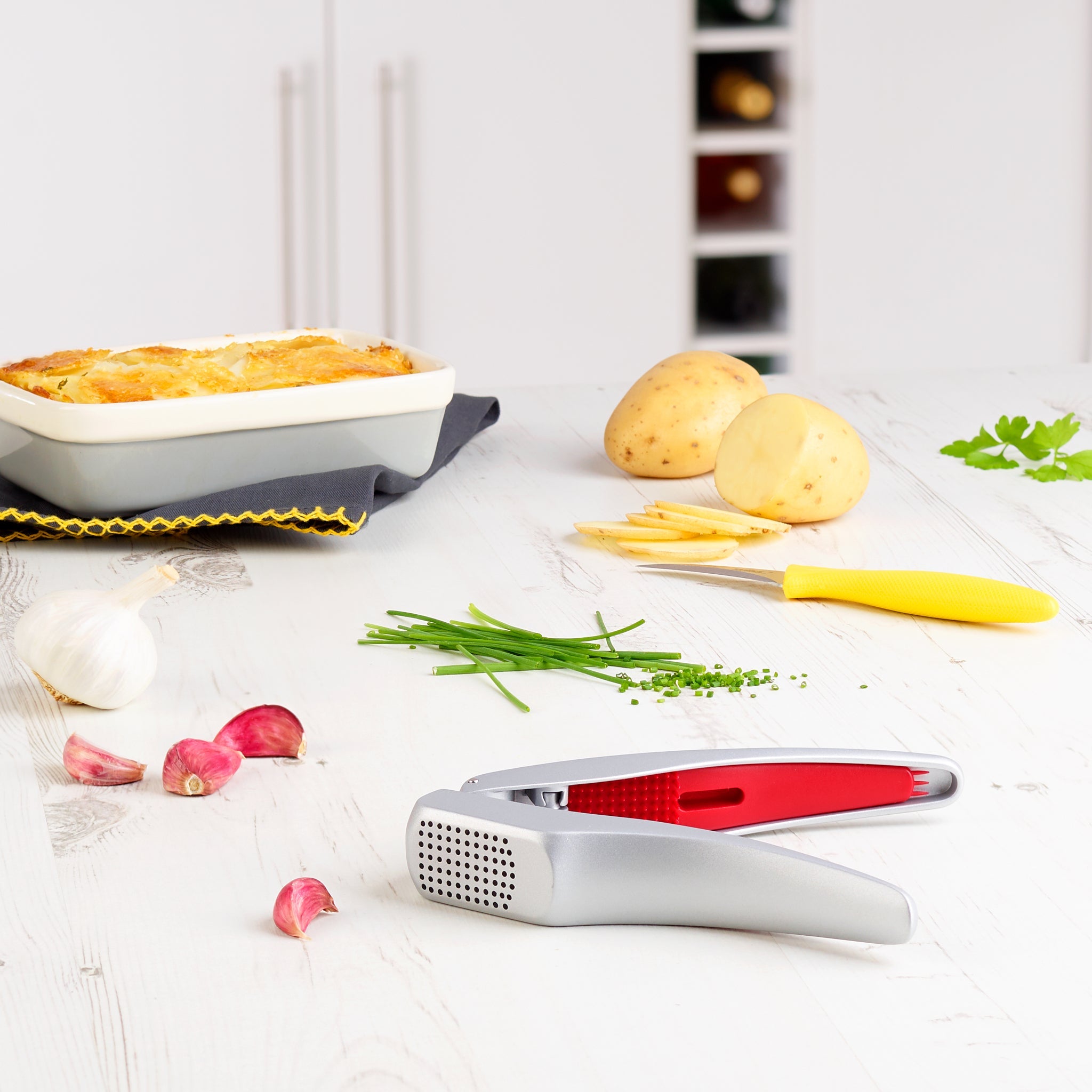 Sublimez votre cuisine avec les ustensiles Zyliss pour ail et herbes aromatiques, conçus pour hacher, presser et émincer rapidement et efficacement. Grâce à leur design ergonomique et leurs lames tranchantes en acier inoxydable, ces ustensiles vous permettent de préparer l'ail et les herbes fraîches sans effort. Lavables au lave-vaisselle et faciles à nettoyer, ils apportent rapidité et précision à votre cuisine.