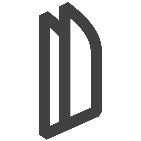 A thick, black, right-angle shape resembling an uppercase L with a rectangular cutout in the corner, set against a white background.