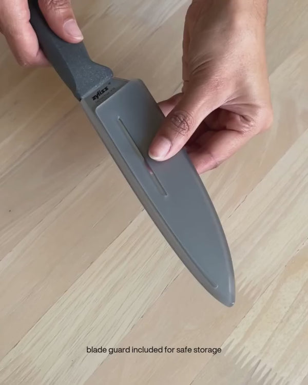 La collection de couteaux utilitaires Zyliss est conçue pour la préparation quotidienne en cuisine. Dotée de lames tranchantes en acier inoxydable et de manches ergonomiques écologiques fabriqués à partir de matériaux durables, elle offre une prise en main antidérapante pour un confort et un contrôle optimaux. Les étuis de protection garantissent un rangement sûr. Parfaits pour trancher fruits, légumes, fromages, viandes et bien plus encore.