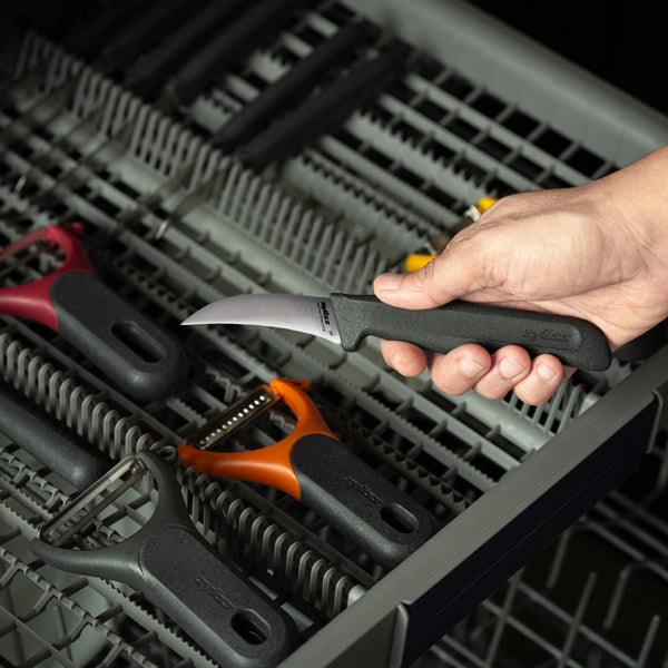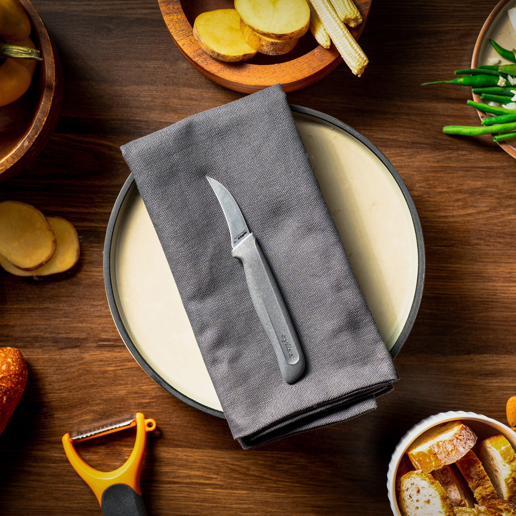 Découvrez le couteau à éplucher Zyliss, un outil de précision alliant fonctionnalité et durabilité. Sa lame courte et incurvée épluche sans effort et avec soin tous types d'aliments, des pommes de terre aux kiwis. Compatible lave-vaisselle et doté d'un protège-lame facile à insérer pour un rangement sécurisé, ce couteau présente un manche ergonomique innovant en paille de blé écologique, réduisant ainsi l'utilisation de plastique jusqu'à 20 %. Bénéficiez d'une tranquillité d'esprit grâce à la garantie Zyliss de 5 ans.
