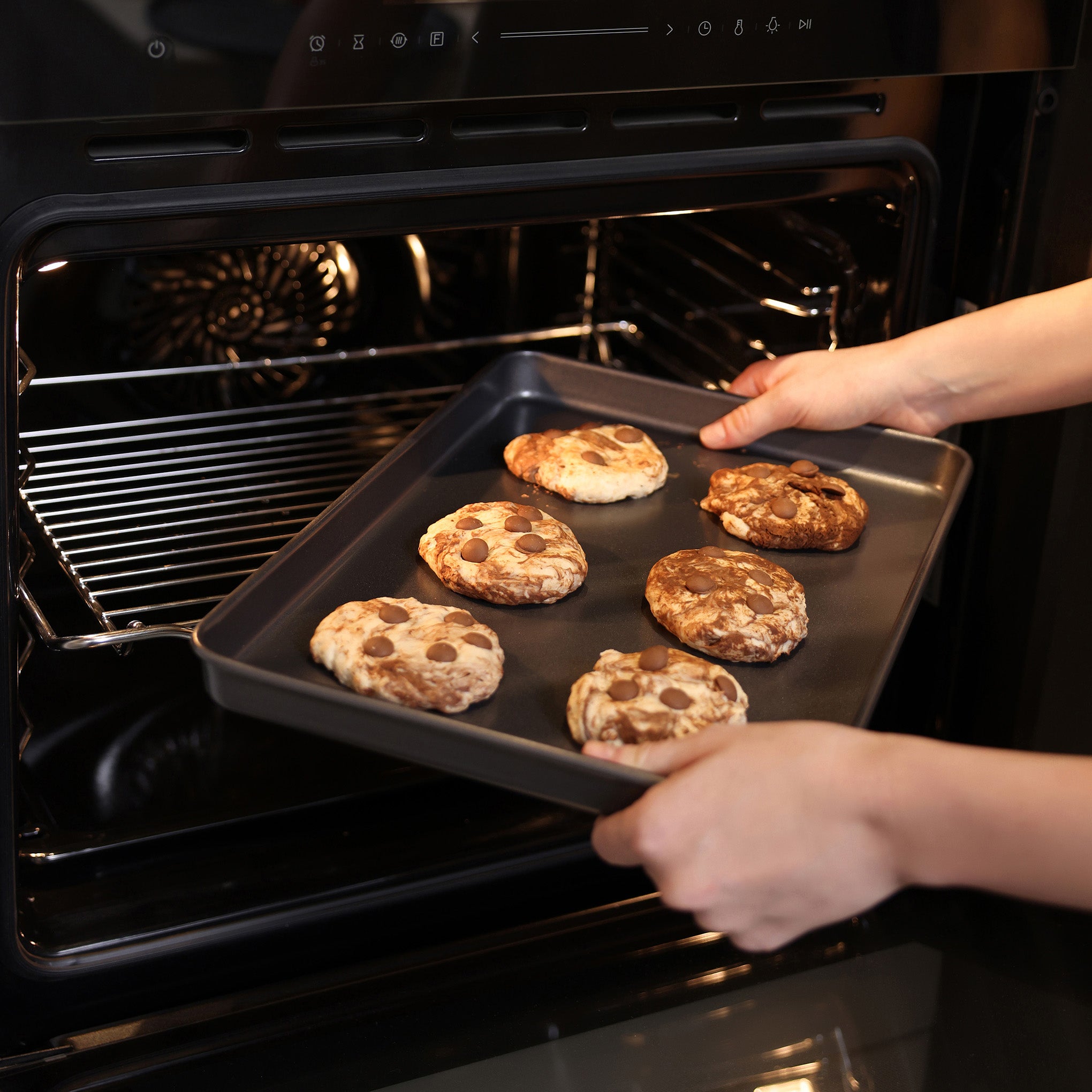La plaque de cuisson antiadhésive Zyliss est conçue pour une utilisation quotidienne au four, au gril et au four. Idéale pour les biscuits, les pains plats, la focaccia et les légumes rôtis, elle assure une répartition uniforme de la chaleur pour des résultats toujours réussis.