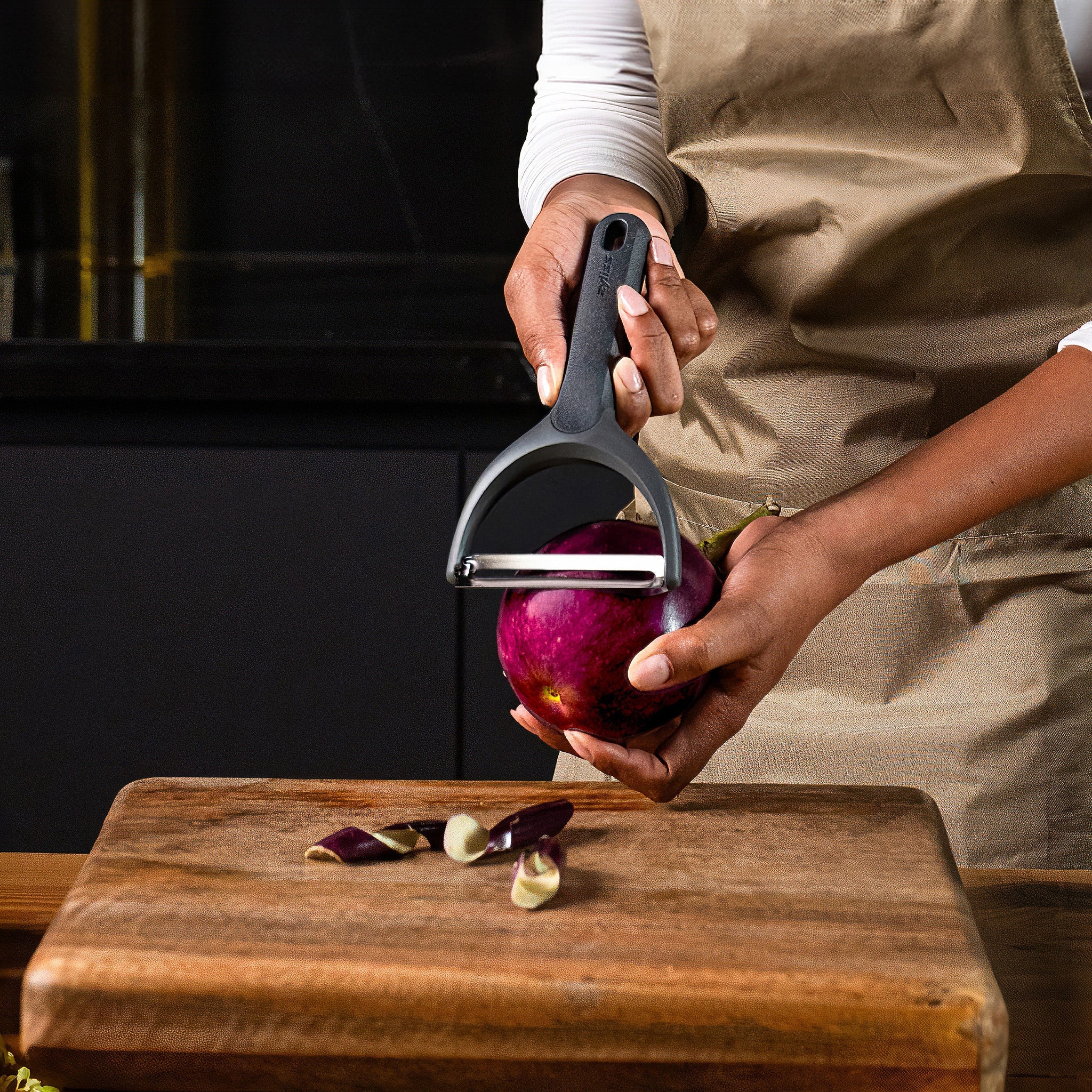 Épluchez sans effort les légumes les plus coriaces grâce à l'éplucheur large Zyliss. Sa lame extra-large en acier inoxydable épluche facilement les légumes à peau épaisse comme l'aubergine, tandis que sa pointe acérée élimine les imperfections sans effort. Son manche ergonomique et écologique en paille de blé assure une utilisation confortable et réduit l'utilisation de plastique jusqu'à 50 %. Conçu pour durer, cet éplucheur est compatible avec les aliments et le lave-vaisselle, et est doté d'un protège-lame résistant. Bénéficiant d'une garantie de 5 ans, cet éplucheur large allie parfaitement durabilité et performance pour une cuisine plus intelligente et plus écologique.